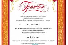 В номинации: «Лучшая профсоюзная страница на сайте организаций общеобразовательного и дополнительного образования» получила Грамоту за 3 место.