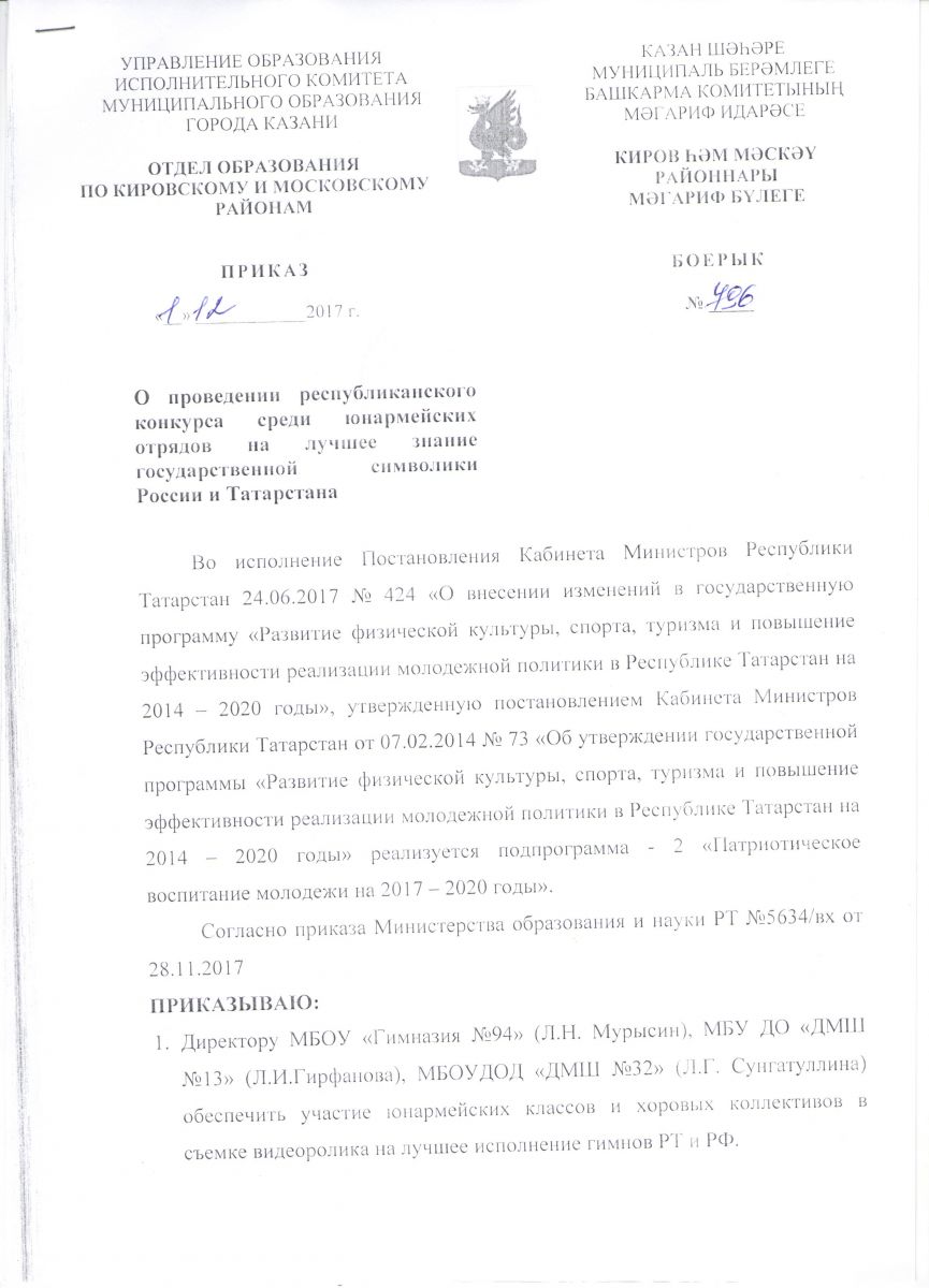 Конкурс юнармейских отрядов: приказ 1 стр, приказ 2 стр