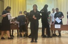 Сотрудники и курсанты института порадовали ребят музыкальными номерами, исполнением новых и хорошо знакомых песен.