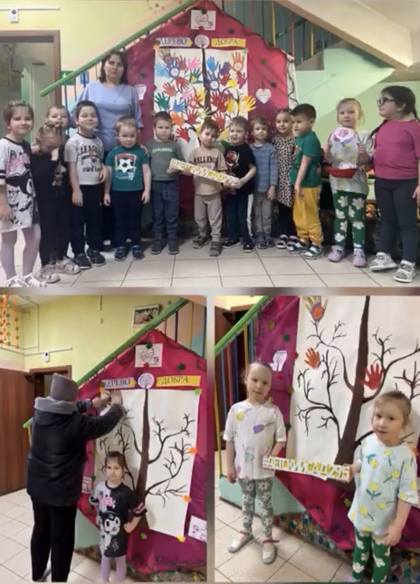 13 ноября отмечается Всемирный день доброты. Это замечательный повод напомнить каждому человеку о важности таких качеств, как доброта, внимательность и забота о ближних.Сегодня в нашем детском саду также состоялся особенный День Доброты. Педагоги провели интересные беседы с воспитанниками, рассказывая о значении добрых поступков и вежливости. Дети активно участвовали в диалогах, осознавая важность поддержки друг друга теплыми словами и искренними улыбками.Вместе с родителями и сотрудниками мы устроили творческое мероприятие — создание необычной композиции под названием «Дерево добра», которое украсило холл нашего учреждения. Каждый ребенок оставил отпечаток своей руки, и вместе с родителями подписал теплые пожелания и добрые слова. Получившееся дерево стало настоящим символом дружбы, взаимовыручки и заботы друг о друге.Пусть этот день останется в памяти наших малышей надолго, даря вдохновение совершать больше хороших поступков!Желаем в этот день: счастья, здоровья и много-много добра вам и вашим близким. Пусть жизнь каждого наполняют светлые чувства и хорошие события, ведь каждый добрый поступок способен сделать мир чуточку лучше!