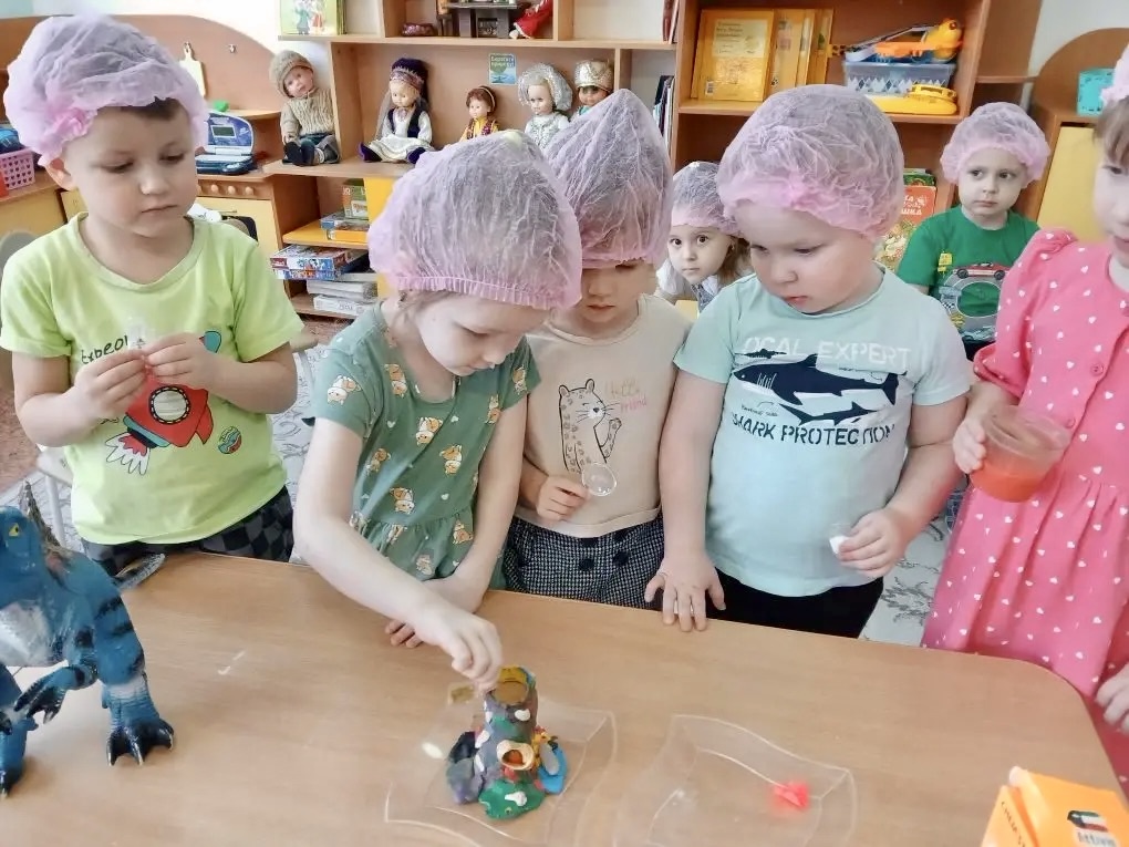 Сегодня в средней группе педагог — Мельникова З.Т.провела увлекательнейший эксперимент под названием «Вулкан», с целью сформировать у ребят элементарный взгляд на одно из удивительных природных явлений — вулкан! ✨ Во время занятия педагог наглядно продемонстрировала детям химическое явление взаимодействия щелочи с кислотой, показав реакцию нейтрализации. Ребята были полны энтузиазма и интереса, наблюдая процесс реакции кислоты и щелочи, имитирующей извержение настоящего вулкана. Это помогло создать атмосферу захватывающего научного исследования, способствующую развитию познавательной активности наших маленьких учёных. Эксперимент прошёл успешно, дети получили массу положительных эмоций и знания, полезные для развития их кругозора и понимания природы вокруг себя.