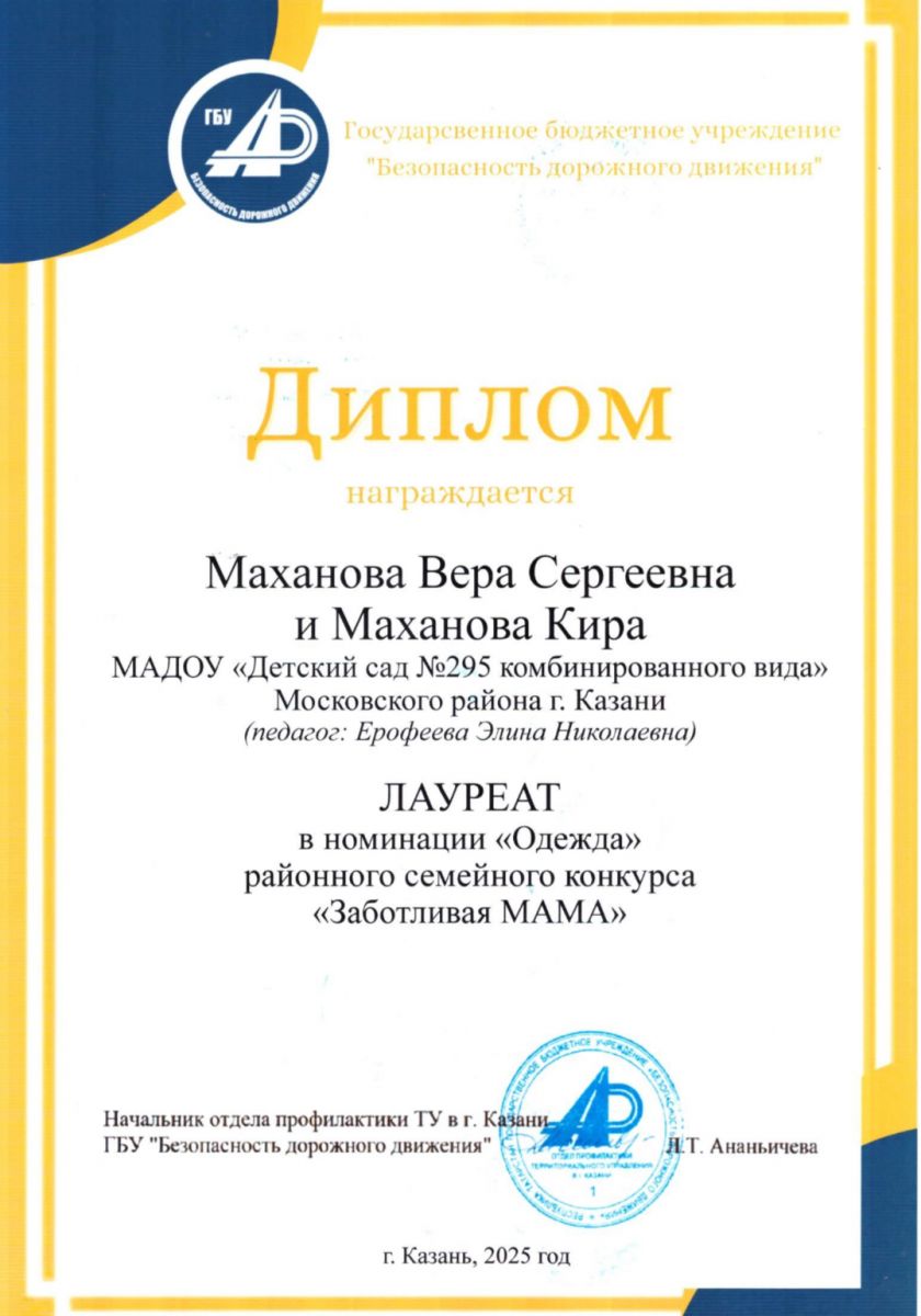 22.05. прошло торжественное награждение участников районных конкурсов по пропаганде правил дорожного движения «Заботливая мама» и «Фотомарафон». Из нашего детского сада в районном семейном конкурсе "Заботливая мама" /upload/storage/org2902/files/6edf8a4c-1baf-420b-b6d5-009d370d1789.jpeg /upload/storage/org2902/files/IMG_2042.jpeg по декорированию моделей одежды светоотражающими материалами приняла участие семья Махановой Киры. Победители и призеры конкурса были награждены грамотами. Семья Махановых стали ЛАУРЕАТАМИ в номинации «Одежда».Поздравляем!!!А главным подарком для каждой семьи стала безопасность собственных детей, ведь на их одежде останутся светоотражающие элементы, пришитые заботливыми руками любящей мамы. Все понимают, что присутствие светоотражающих элементов на одежде может значительно снизить травматизм на дорогах, а совместное участие родителей и детей в декорировании одежды несет в себе положительную динамику в усвоении правил поведения на дорогах.