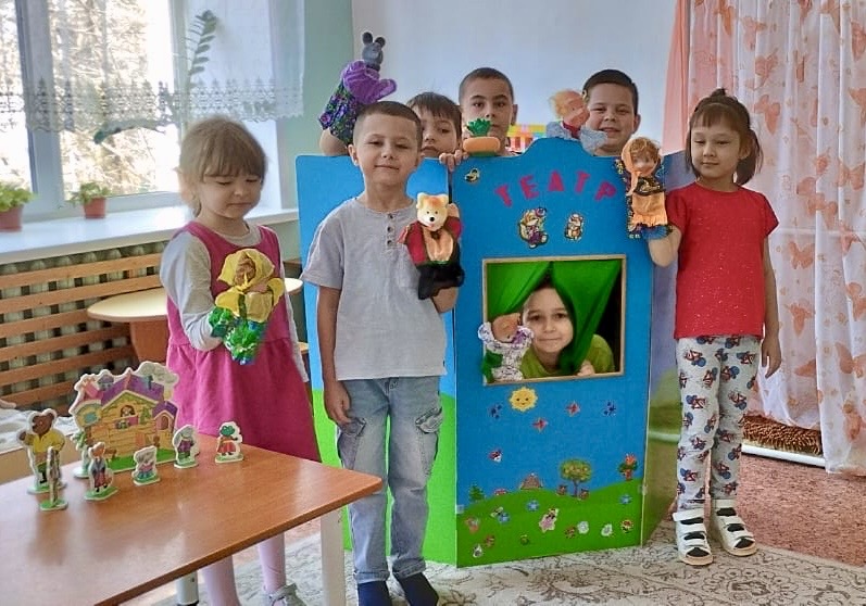Дети с удовольствием играли в подвижные и сюжетно-ролевые игры, игры-драматизации по русским народным сказкам с использованием театральных атрибутов и разнообразных костюмов сказочных героев. Были организованы выставки рисунков «Любимые сказочные герои», «Моя любимая сказка». И конечно же прошли театрализованные представления- одна из форм сказкатерапии, основными задачами которых являются социализация ребенка, помощь в адаптации к окружающей среде, развитие речевых навыков, воспитание уверенности в себе, развитие фантазии, творчества, памяти, внимания. Театрализованная деятельность помогает детям сблизиться с персонажами сказки, пережить их победы и поражения, радость и счастья.