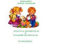 ТРЕБУЕТСЯ ВОСПИТАТЕЛЬ И МЛАДШИЙ ВОСПИТАТЕЛЬ