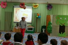 В рамках проекта "Культурный город-грамотный город" в детском саду прошёл "Литературный дворик". В этом году замечательной и ещё совсем молодой книге «Домовёнок Кузя» Т. И. Александровой исполняется 45 лет. Кто же такой домовой? Есть ли у него родственники в других странах? Чем принято угощать и задабривать хозяина дома? Найти ответы на эти и другие вопросы, а также узнать историю появления книги и познакомиться с выставкой «Знакомьтесь! Домовёнок Кузя!» смогли воспитанники нашего детского сада на развлечении «Домовёнок Кузя и его друзья», которое организовали педагоги нашего сада.