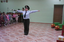 С детьми старшего дошкольного возраста провели профилактическое занятие "Движение без опасности". Во время развлечения дети повторили и обобщили свои знания о правилах дорожного движения. А Лейля Арслановна в роли полицейского объяснила и закрепила через игру команды, подаваемые жезлом. Дети были очень довольны.