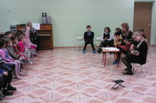 А вечером у нас в гостях были учащиеся музыкальной школы. Педагоги в игровой форме ознакомили с музыкальными инструментами и, особенно подробно, с гитарой. Дети подготовительных к школе групп с интересом слушали игру школьников на гитаре.