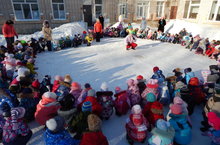 В нашем детском саду прошла масленица, дети прощались с Зимой и встречали Весну. Все ребята с нетерпением ждали этот праздник. Программа получилась очень веселой и развлекательной. Праздник начался с проводов зимы. Ушла Зима с песнями и заговорами, и на смену ей пришла красивая и нарядная Весна. Она встретила детей загадками, играми и плясками. В гости на масленицу пришли герои из сказок, которые играли, шутили с детьми, ребята разыгрались, дружно смеялись и все время зазывали Весну. Весна отблагодарила всех участников самым главным угощением Масленицы. Ребята и взрослые дружно плясали под русские народные песни.