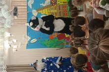 Сегодня для детей состоялось театрализованное представление театра « Апельсин». Дети посмотрели интересную, поучительную сказку « Кот хвастун». Детям, очень понравился спектакль, они научились оценивать поступки героев сказки, вместе с героями, ребята танцевали, участвовали в конкурсах. Спектакль никого не оставил равнодушным и вызывает массу положительных эмоций.