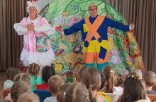 В конце дети подарили громкие аплодисменты актёрам, а актёры поблагодарили ребят за внимание и участие!