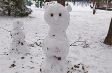 С первый снегом. Сегодня вечеров выйдя на прогулку вечером, детей ждала большая радость – Первый снег. А вот такие снеговики встретили нас на следующий день.