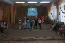 Праздник «Осень золотая в гости к нам пришла!» прошел весело и интересно. В течение недели дети активно готовились к празднику: рисовали рисунки на осеннюю тему, изготовляли поделки из природного материала. Была оформлена выставка творческих работ: стенд с рисунками «Осень золотая в гости к нам пришла» и поделками из природного материала. Итоговое развлечение было проведено в каждой группе, ребята пели песни, собирали урожай, танцевали.