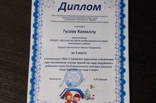 Поздравляем Гусеву Камиллу, воспитанницу старшей группы № 2 . Она заняла почетное III место в районном этапе Республиканского конкурса рисунков " Буду бдительным на льду и на воде" в номинации: "Как я помогаю взрослым спасателям при несчастном случае зимой на льду водоемов". Педагог: Валиуллина Л. Г.