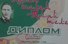 Воспитанники нашего детского сада Вафина Ралина (татарской старшей группы №8), Ахмадиев Амир, Минибаев Данияр (подготовительная группа №11) под руководством Гилемовой А.А., воспитателя по обучению детей татарскому языку, приняли участие в Открытом Всероссийском фестивале-конкурсе "Туган телем - Тукай теле" и были ннаграждены дипломами участника. Данный фестиваль проходил в ДК "Юность". Администрация и педагогический коллектив поздравляет их и желает дальнейших творческих успехов.
