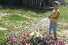 Лето в детском саду - чудесное время! Прогулки, игры на свежем воздухе - все для здоровья и радости! Есть у нас и помощники. С удовольствием поливают цветники и содержат в чистоте территорию любимого детского сада.