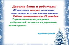Дорогие родители! Объявляется конкурс на лучшую новогоднюю игрушку своими руками!