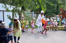 В детском саду прошел праздник Сабантуй. Герои праздника рассказали историю праздника, помогли прочувствовать его дух и вместе с детьми активно участвовали во всех состязаниях: это бег в мешках, бег с яйцами, перетягивание каната, перерезание подарков с завязанными глазами, разбивание горшка. Водили хороводы и пели песни. Праздник был ярким, красочным, интересным и познавательным для ребят.