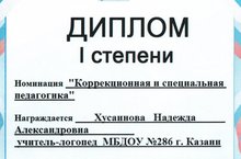 Поздравляем Хусаинову Надежду Александровну, учителя-логопеда старшей группы № 5 , которая приняла участие в конкурсе "Интеллектуал" в номинации "Коррекционная и специальная педагогика" , название работы: Дидактическое пособие для работы с детьми 2-8 лет ОВЗ "Волшебный глобус" и была награждена дипломом 1 степени. Желаем дальнейших успехов и новых побед!