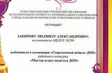 10 и 11 ноября наши педагоги Сабирова Раиса Мударисовна и Закирова Людмила Александровна представляли наш детсский сад на районном конкурсе воспитателей ДОУ "Мастер-класс педагога ДОУ", который проходил на базе МАДОУ №340.