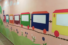 В летний период мы постепенно начинаем готовится к новому учебному году. В коридоре 1 этажа, на стене, появился замечательный яркий и веселый паровозик, у которого 6 вагончиков, на каждую группу по 1. В окошко своего вагончика группы будут вставлять фотографии.