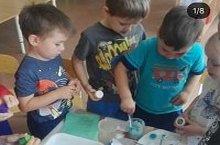 В 4 группе сегодня необычный день под названием "Я рисую мир". Дети делали краски своими , а затем рисовали шедевры.