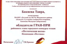Муниципальное автономное дошкольное образовательное учреждение"Детский сад № 174 комбинированного вида" Московского района г.Казани