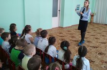Сегодня с детьми старшего дошкольного возраста была проведена беседа инспектором по пропаганде ДТП. А также были просмотрены мультфильмы "Дозорные дорог" по профилактике ДТП.