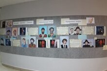 В честь юбилейного года А.С. Пушкина в гимназии было продолжено оформление тематических экспозиций. На этот раз учащиеся 9 "А" класса Трофимова Анастасия и Исанбаева Азиза с помощью родителей и классного руководителя Гомыжевой С.А. реализовали свой проект —"А.С. Пушкин "Капитанская дочка", “Портретная галерея”.