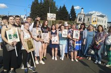 В майский светлый день заветныйЧерез семь десятков летМарширует полк Бессмертный –Память доблестных побед.Строем правнуки и внукиПобедителей войны –Словно знамя, держат рукиФото воинов страны...9 мая учителя, ученики и их родители прошли дружными рядами вместе со многими тысячами казанцев по улицам нашего города в торжественном шествии "Бессмертный полк" -