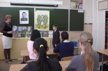 6 мая 2-16 года в канун самого святого в истории нашей страны праздника на третьем этаже школы была развёрнута экспозиция передвижной выставки «Музей в чемодане», где были представлены подлинные вещи солдат Великой Отечественной войны. Учащиеся 1 – 5 классов нашей школы знакомились с бытом солдат той далёкой поры, своими глазами увидели документы, отражающие фронтовые будни военных частей и соединений Красной Армии, получили возможность подержать в руках уникальные экспонаты походного снаряжения советского солдата.