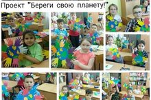 Во 2 "Б" классе прошёл интегрированный урок технологии и окружающего мира. Ребята выполняли проект "Береги свою планету!"