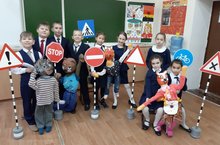 В рамках месячника безопасности учащиеся 4 А класса провели внеклассное мероприятие "Знай и соблюдай!" по правилам дорожного движения.