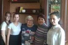 Члены кружка "Юный краевед" (руководитель Хайруллина Г.Р.) поздравили с Днем пожилого человека нашего ветерана Великой Отечественной войны Лопатину Екатерину Насибулловну.
