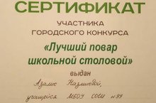 Поздравляем нашу Назмиеву Азалию учащуюся 5 К класса и руководителя Галиеву Залию Магсумовну с успешным выступлением на городском конкурсе "Лучший повар школьной столовой", организованный департаментом продовольствия и социального питания г.Казани.