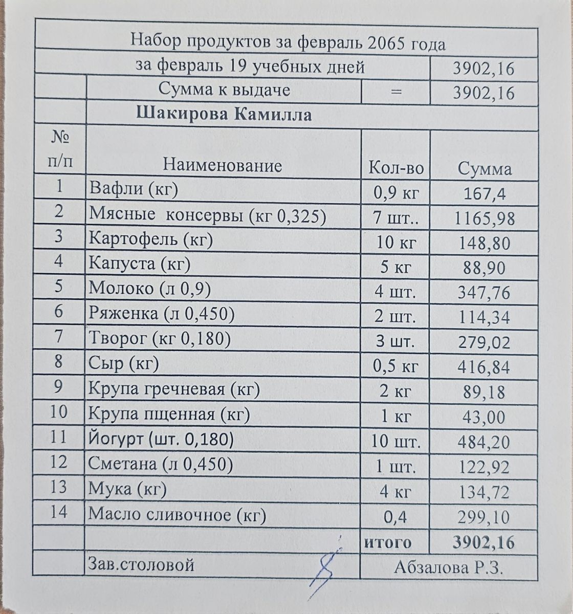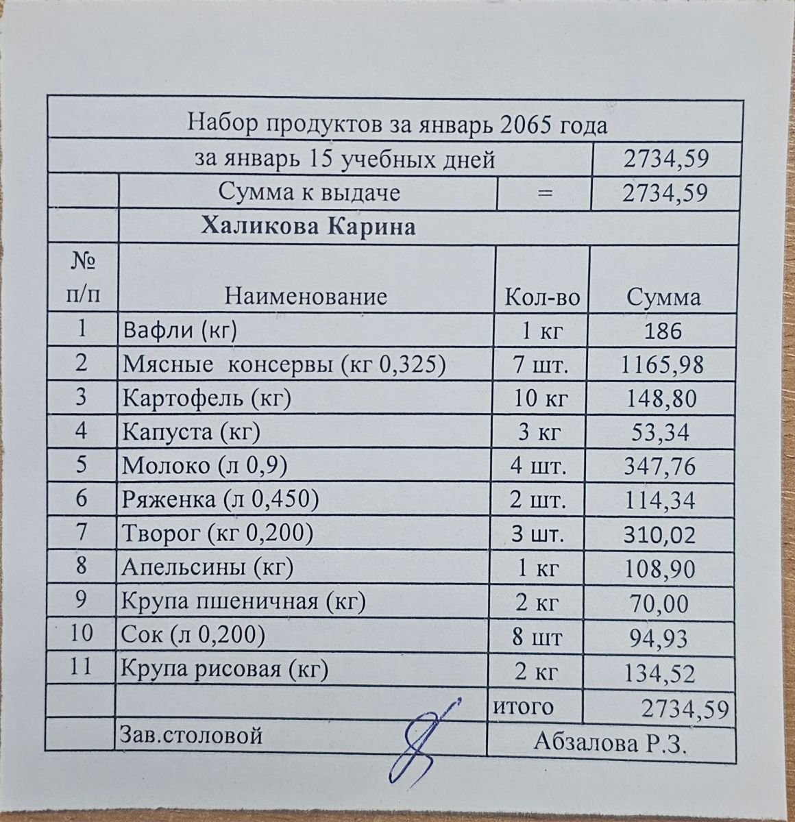Продуктовый набор, выдаваемый обучающимся индивидуально на дому - февраль 2025