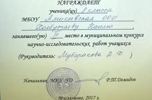 8 нче класс укучысы Холбутаева Наилә фәнни-тикшеренү эшләренең муниципаль этабында 3 нче урын яулады. Җитәкчесе-Мубаракова Д.Ф.