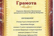 Татар халкының бөек шагыйре Габдулла Тукайның тууына 130 еллыгына багышланган бәйрәм тантанасында Тукай шигырьләрен "Иң оста сөйләүче" номинациясендә җиңгәне өчен 5 сыйныф укучысы Шамс А. грамота һәм кыйммәтле бүләккә ия булды. Котлыйбыз, уңышлар телибез.