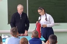 В рамках месячника безопасности детей и "Эктремизму - Нет" учитель ОБЖ Ахметов Рамиль Абузарович провел урок по основам безопасности жизнедеятельности, направленный на подготовку детей к действиям в условиях чрезвычайных ситуаций различного вида, с отработкой вопросов срочной эвакуации из здания школы.