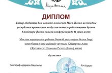 8 нче сыйныф укучысы Хәйдәрова Алия татар әдәбияты һәм сәнгате өлкәсендә Муса Җәлил исемендәге республика премиясенә ия булган шәхесләребез иҗаты буенча I төбәкара фәнни-гамәли конференциядә катнашып, 2 урынга лаек булды. Фәнни җитәкчесе Шамсова Р.Д. Афәрин! Котлыйбыз!