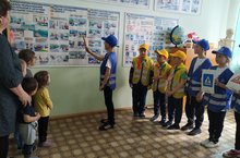 Члены отряда ЮИД выступили на тему "Правила дорожного движения" перед учениками школы и воспитанниками дошкольной группы./ ЮИД отряды членнары мәктәп укучылары һәм мәктәпкәчә яшьтәге балалар төркемендә тәрбияләнүчеләр каршында "Юлда йөрү кагыйдәләре" темасына чыгыш ясадылар.