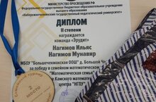 Олы Чакмак мәктәбеннән Нәгыймовлар гаиләсе Чаллы педагогия университетының Кама математика үзәге базасында үткән "Математик гаилә" конкурсында катнаштылар. Алар яхшы нәтиҗәләр күрсәтеп, турнирның II дәрәҗә дипломына лаек булдылар,
