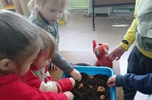 Экология айлыгы кысаларында балар бакчасының зурлар торкеме суган, борчак утырту тәҗрибәсе уткәрделәр, бакча тирэсен жыештыруда катнашалар.Тәрбиячеләре Гарифуллина Розалия