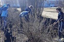 Мәктәптә экология айлыгы дәвам итә. Укучылар мәктәп территориясен чистарттылар, карлыган төпләрен йомшарттылар