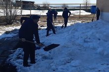 Чисталык икеайлыгы кысаларында укучылар мәктәп ишекалдын кардан арындырдылар
