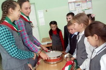 Балалар оешмасы көне уңаеннан “ СНТ” атрибутикасы белән вожатыйлар башлангыш сыйныф укучыларын таныштырдылар