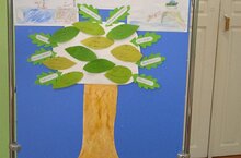 Психология атналыгы дәвам итә. Балалар "Игелекле сүзләр " агачын ясадылар.Һәрбер агач ботагындагы яфракларга игелекле сүзләр язып эленде.Башлангыч сыйныф укучылары "Минем бәхетле көнем " темасына рәсем ясадылар.