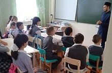 Мәктәптә Яссир хәзрәт белән очрашу үтте.Ул балаларга үзенең үгет-нәсыйхәтләрен бирде.