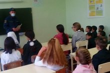 МЧС хезмәткәрләре балалар белән тормыш иминлеге дәресе үткәрделәр.