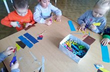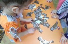 Мөслим авылы "Карлыгач" балалар бакчасының уртанчылар төркемендә кисеп-ябыштыру эшчәнлеге. Балалар кисеп-ябыштыру турындагы белемнәрен ныгыттылар, камилләштерделәр; түгәрәк, турыпочмаклы өлешләрен кисәргә өйрәнделәр. Транспорт төрләре буенча белемнәрен ныгыттылар.