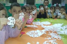 Мөслим авылы "Карлыгач" балалар бакчасы мәктәпкә әзерлек төркеме белән "Яңа ел" кар бөртекләре ясап, бүлмәләрне дә бизәп, матурлап куйдык. Кайчы белән эшләү, балаларның кул моторикасына яхшы йогынты ясый.